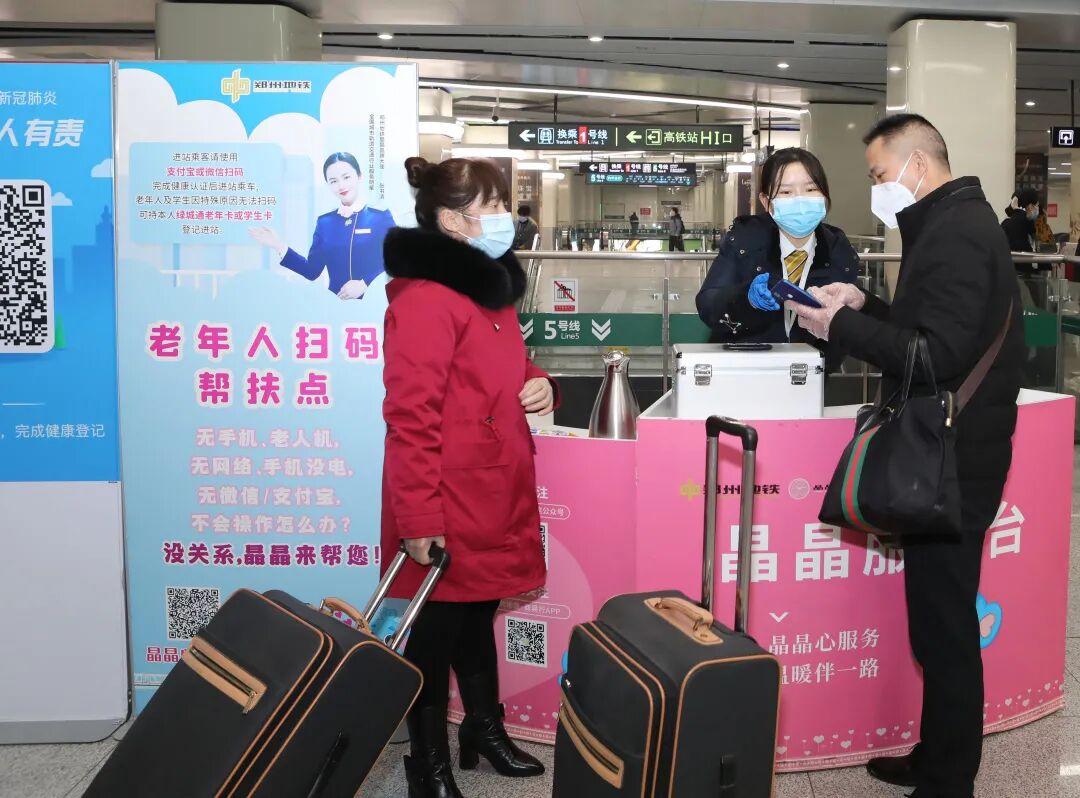 設(shè)置晶晶愛心服務(wù)臺。鄭州東站、鄭州火車站、新鄭機場站設(shè)置晶晶愛心服務(wù)臺,并依托服務(wù)臺設(shè)置老年人掃碼幫扶點,同時向廣大乘客提供熱水、醫(yī)藥箱等暖心服務(wù)。