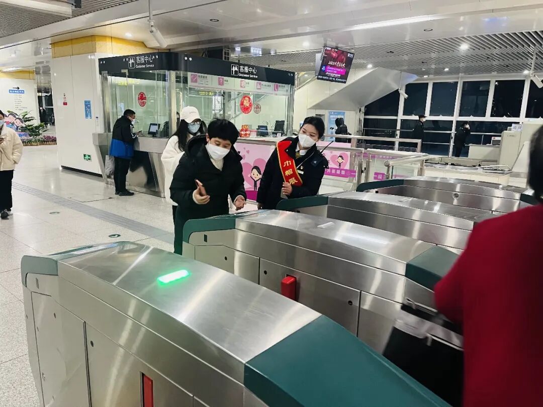 暖心服務(wù)環(huán)環(huán)相扣,點(diǎn)滴之間暖人心。結(jié)合學(xué)生客流特點(diǎn),鄭州地鐵線網(wǎng)車站從進(jìn)站、候車、乘降等環(huán)節(jié)入手,對(duì)站臺(tái)、車門等關(guān)鍵部位加強(qiáng)盯控,制定客運(yùn)組織方案及大客流應(yīng)急預(yù)案,確保學(xué)生群體安全出行、平安返校。通過增開安檢機(jī)、靈活調(diào)整電扶梯方向、增設(shè)隔離警示帶、增加引導(dǎo)提示牌,避免學(xué)生群體扎堆擁堵;加派工作人員在站臺(tái)、通道、出站口等關(guān)鍵位置進(jìn)行安全宣傳,在交通樞紐車站及換乘大站邊門處設(shè)置“綠色通道”,鐵爐站、五一公園站、二七廣場(chǎng)站、紫荊山站等換乘車站設(shè)置晶晶無憂換乘崗,在站臺(tái)、出站閘機(jī)、TVM處安排專人幫助學(xué)生快速進(jìn)出站;鄭州地鐵城郊線聯(lián)合新鄭新通公交公司通過定制“地鐵+公交”接駁專項(xiàng)服務(wù),竭力保障學(xué)子春運(yùn)返程一路暢通。