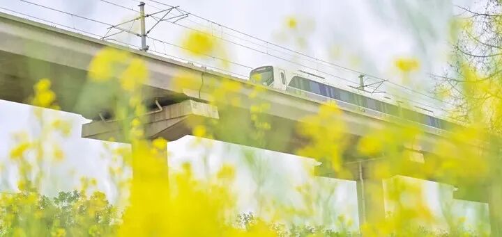 春天,正是油菜花盛開(kāi)的季節(jié),輕微的鳴笛落進(jìn)和煦的春風(fēng)里,與藍(lán)天白云油菜花一起,譜成春日交響曲。