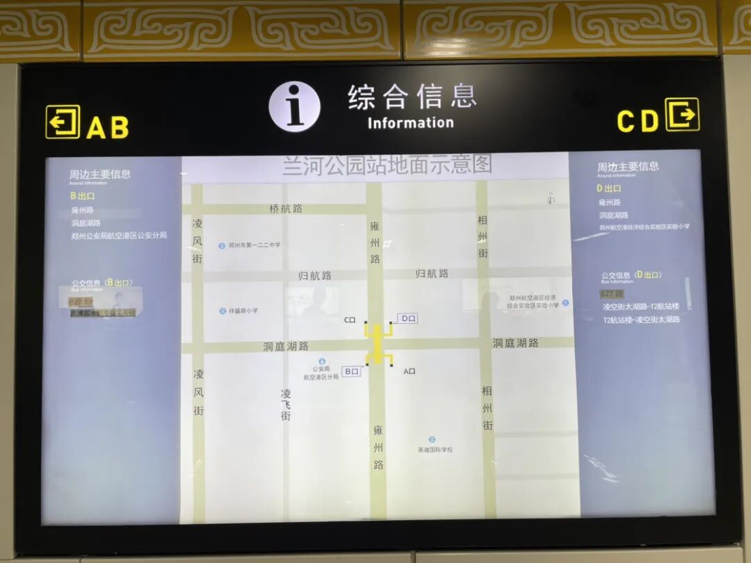 鄭州地鐵溫馨提醒:城郊線蘭河公園站位于鄭州市航空港區(qū)雍州路與洞庭湖路交叉口。車站共設(shè)置A、B、C、D4個出入口。A出入口位于雍州路與洞庭湖路交叉口東南角,C出入口位于雍州路與洞庭湖路交叉口西北角。