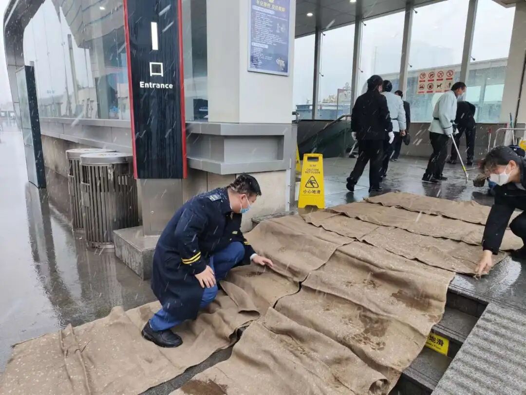 鄭州地鐵將加強(qiáng)對(duì)各車站出入口、站臺(tái)、電扶梯等關(guān)鍵部位巡視巡查,雨雪天氣,車站工作人員及時(shí)清掃車站出入口及周邊區(qū)域積雪,及時(shí)清理出入口及通道積水。在車站出入口、樓梯口、通道等關(guān)鍵部位設(shè)置防滑墊、擺放防滑牌、鋪設(shè)草墊,播放安全提示廣播,提供愛心雨傘,增派員工引導(dǎo)客流,確保市民乘客搭乘地鐵安全順暢出行。