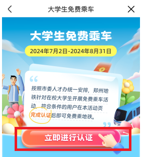 1.在商易行APP點擊“大學(xué)生免費乘地鐵”活動頁面進(jìn)入活動認(rèn)證;在支付寶APP內(nèi)搜索“鄭州地鐵”進(jìn)入商易行小程序,點擊“學(xué)生認(rèn)證”進(jìn)入活動認(rèn)證。