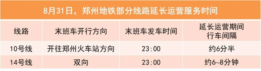 鄭州地鐵結(jié)合大型活動期間客流動態(tài)及特點,科學調(diào)整客運行車組織,8月31日,線網(wǎng)部分線路延長運營服務時間,滿足乘客出行需求。