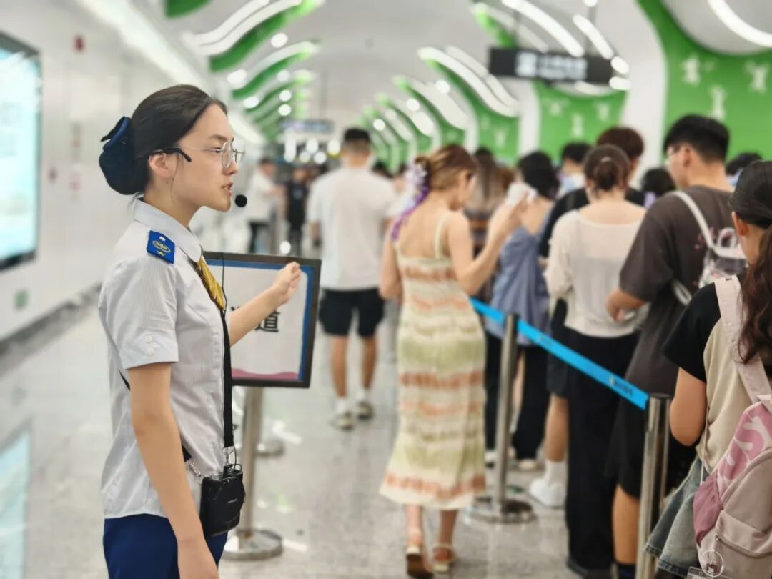 為了提供更加便捷的指引和服務,奧體中心站設置了醒目的出站指引標識,幫助乘客選擇最優(yōu)路線快速有序出站,前往演出現(xiàn)場。同時,車站在進站處也設置了無包通道,減少進站排隊時間,提高乘客出行效率。