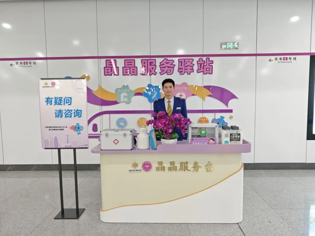 奧體中心站設(shè)置晶晶服務(wù)臺(tái),擺放熱水壺、一次性水杯、移動(dòng)充電寶、醫(yī)療箱、晶晶魔法口袋百寶箱等物品,為乘客提供優(yōu)質(zhì)高效的服務(wù)。此外,客服中心還提供行李臨時(shí)免費(fèi)寄存服務(wù),車站提供衛(wèi)生間引導(dǎo)服務(wù),乘客使用便民服務(wù)卡即可至6/14號(hào)線站臺(tái)使用衛(wèi)生間,輕松觀演,順暢無憂。