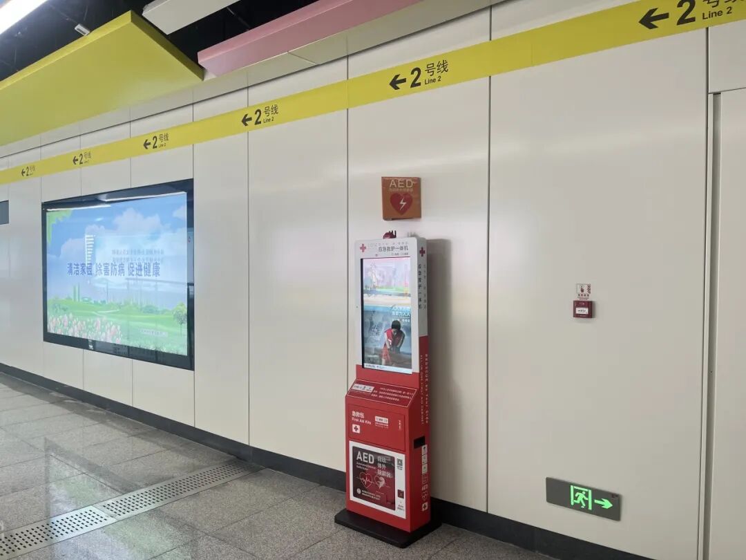 實現(xiàn)AED動態(tài)全覆蓋。目前東風(fēng)路站換乘通道已配置AED應(yīng)急救護一體機,實現(xiàn)東風(fēng)路站廳、站臺、換乘通道全覆蓋。